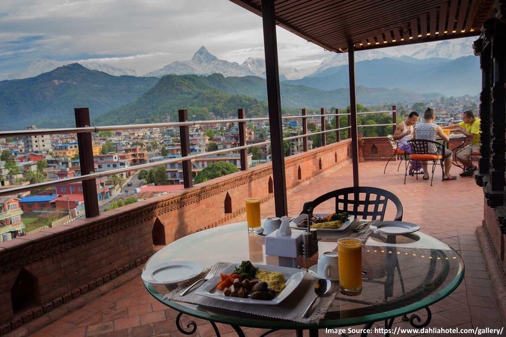 The 1stchoice of stay in Pokhara should be Fish Tail Lodge. This unique heritage style hotel is located in a peninsula, only reachable by a small boat ride, obviously provided by the hotel for commuting. View of the lake and the hills is spectacular from this hotel. They provide cottages to stay with lush beautiful gardens. Food, services, ambience are impeccable. They only have limited cottages just 48, therefore this property is usually fully booked. You need to do the booking way in advance, if you are looking forward to stay here. PS – Prince Charles of UK has been a royal guest to this hotel.
