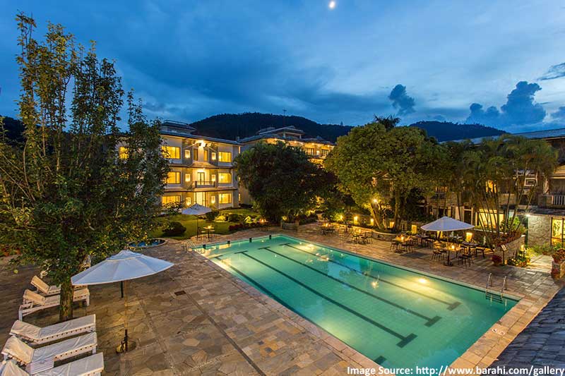 It is a beautiful mid range hotel closer to Lake Phewa. It has a big garden, swimming pool and even a spa. There is a Nepali Dance Show that takes place daily in the evening at the hotel premises. Some of the rooms provide excellent view of the Annapurna Mountain Range from their balcony.