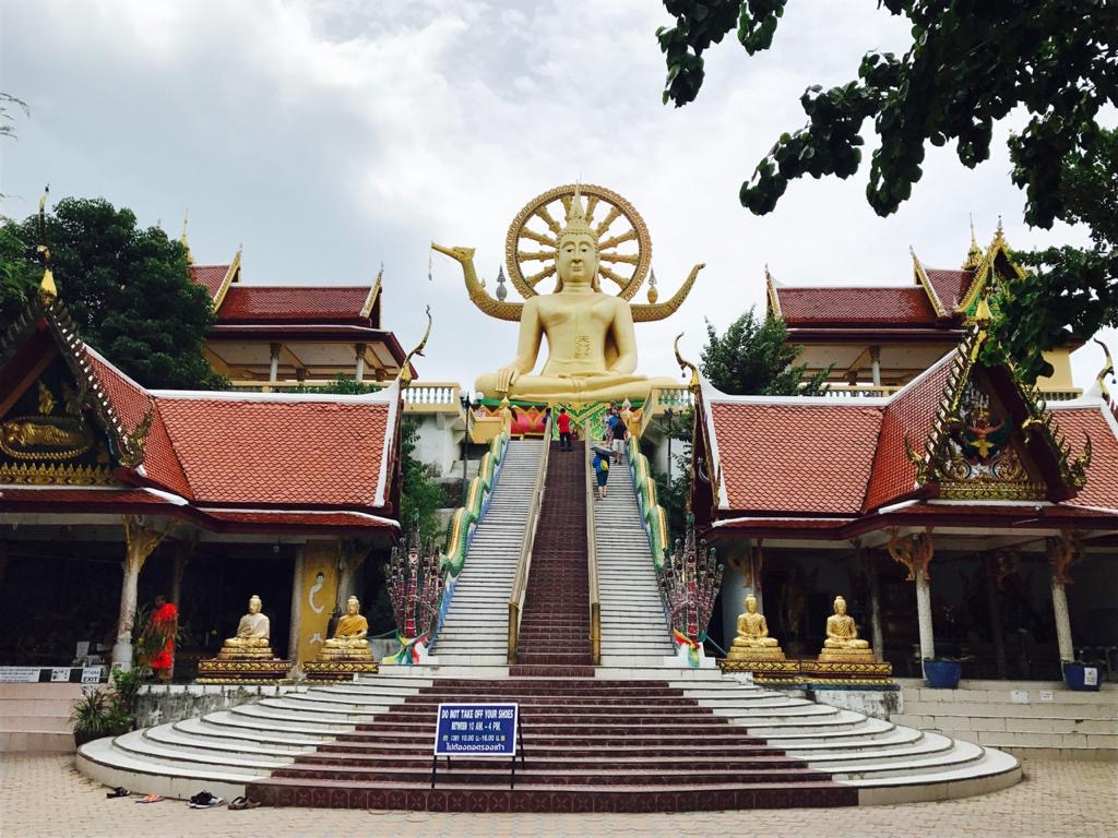 We started with our visit to Big Buddha, also known as the Wat Phra Yai. It is around 8 kms from Chaweng Beach and took us 30 mins to reach. Big Buddha is a 12-meter high statue of Buddha. There are roughly 150 steps to climb to reach the statue. After reaching the spot, enjoy the amazing view of the sea from the top.